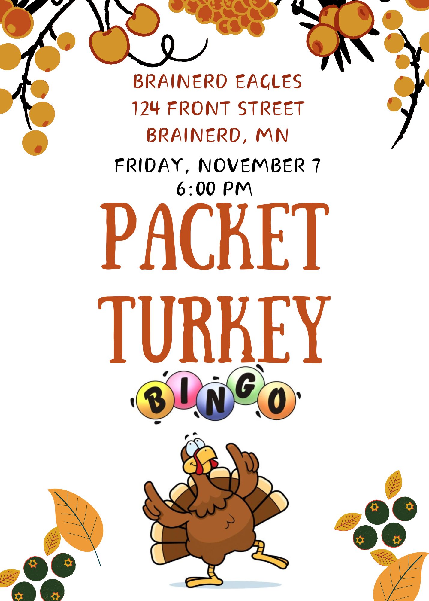 TURKEY PACKET BINGO 6pm