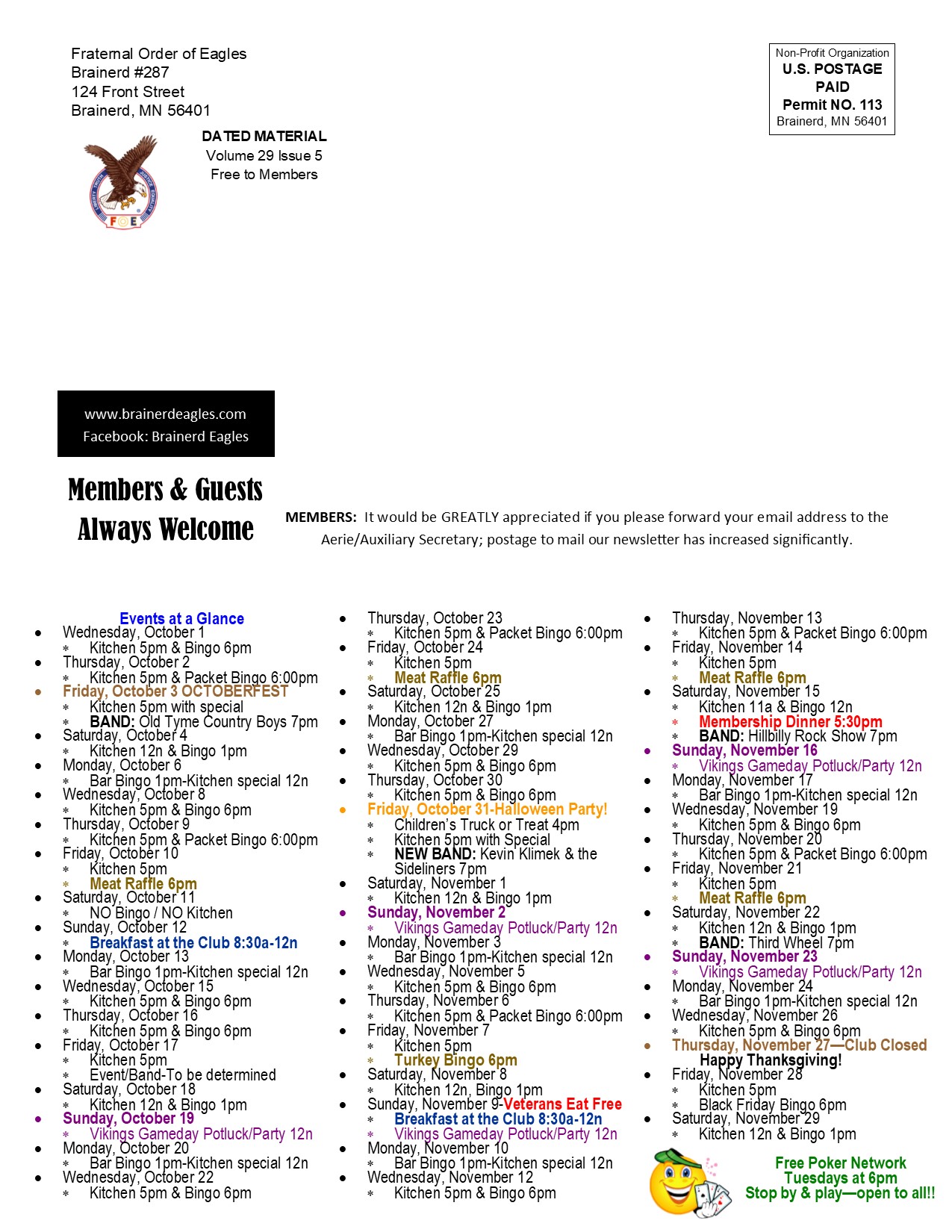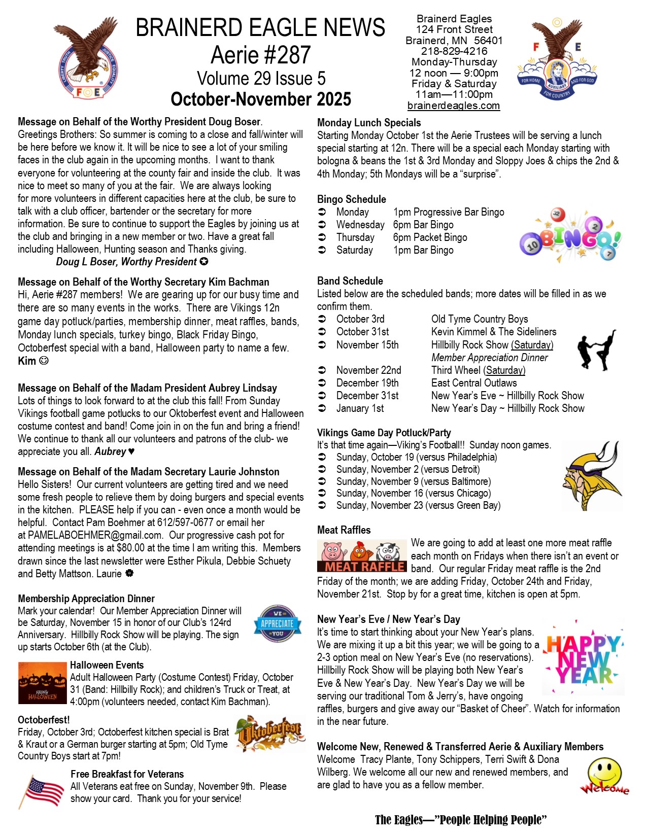 Brainerd Eagles 287 October-November 2025 Newsletter-Calendars